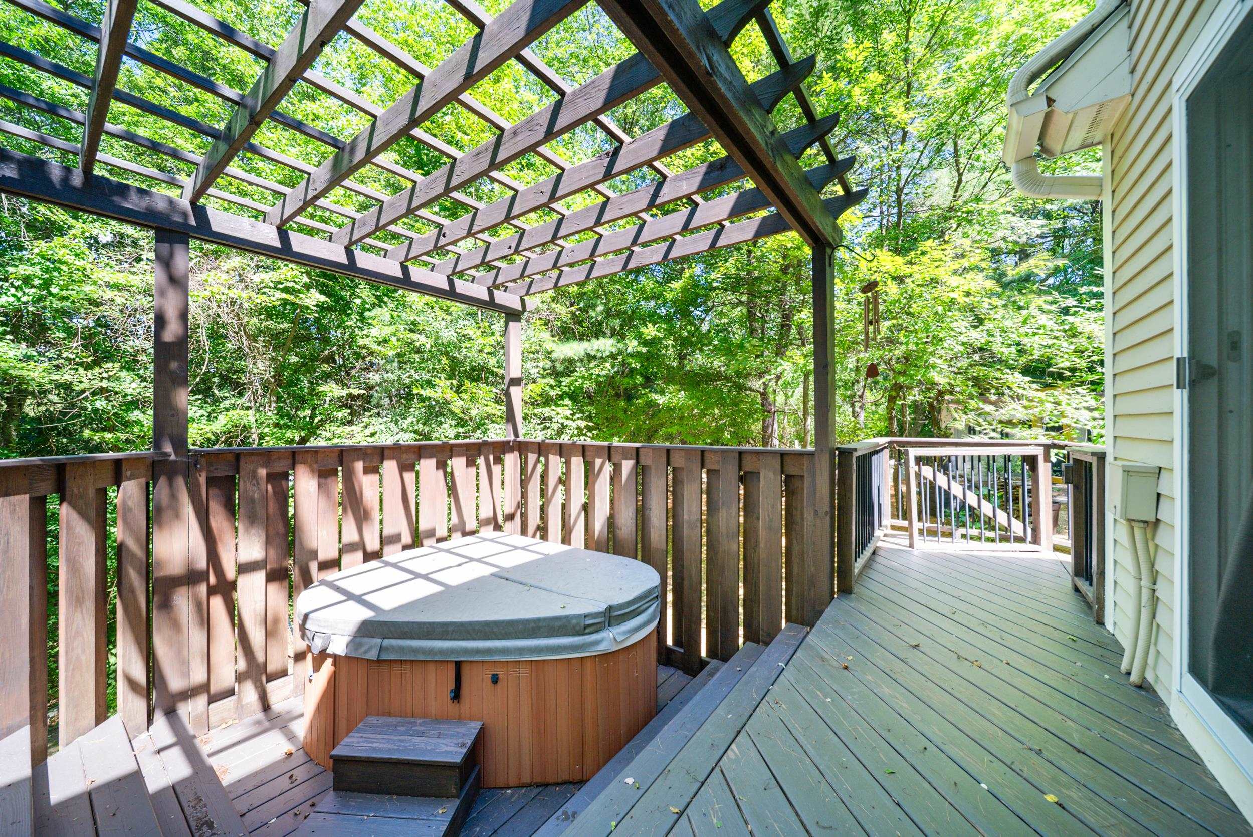 Welcome to this beautifully updated Contemporary Cape, offering the perfect blend of charm, space, and versatility. If you are looking for one level living, step inside to find an inviting layout featuring a desirable first-floor primary suite--ideal for comfort and convenience. The open-concept living area offers a beautiful wood burning fireplace, abundant natural light, and sliders leading to large 38' deck overlooking the private backyard. Escape to the second floor offering an open loft looking down to the living room with 2 bedrooms and a full bath. The fully finished walk-out basement is a standout feature--complete with its own kitchen, full bath, and a private entrance. Whether you're looking for an in-law suite, guest quarters, or additional living space, this lower level delivers incredible flexibility. But the real treat is out back--a private backyard retreat complete with a firepit, hot tub, and room to relax under the stars. Whether you're enjoying quiet evenings fireside or unwinding in the hot tub after a long day, this space makes home feel like a getaway. Don't miss your chance to own this exceptional property! Open House Saturday 7/26 12-2PM